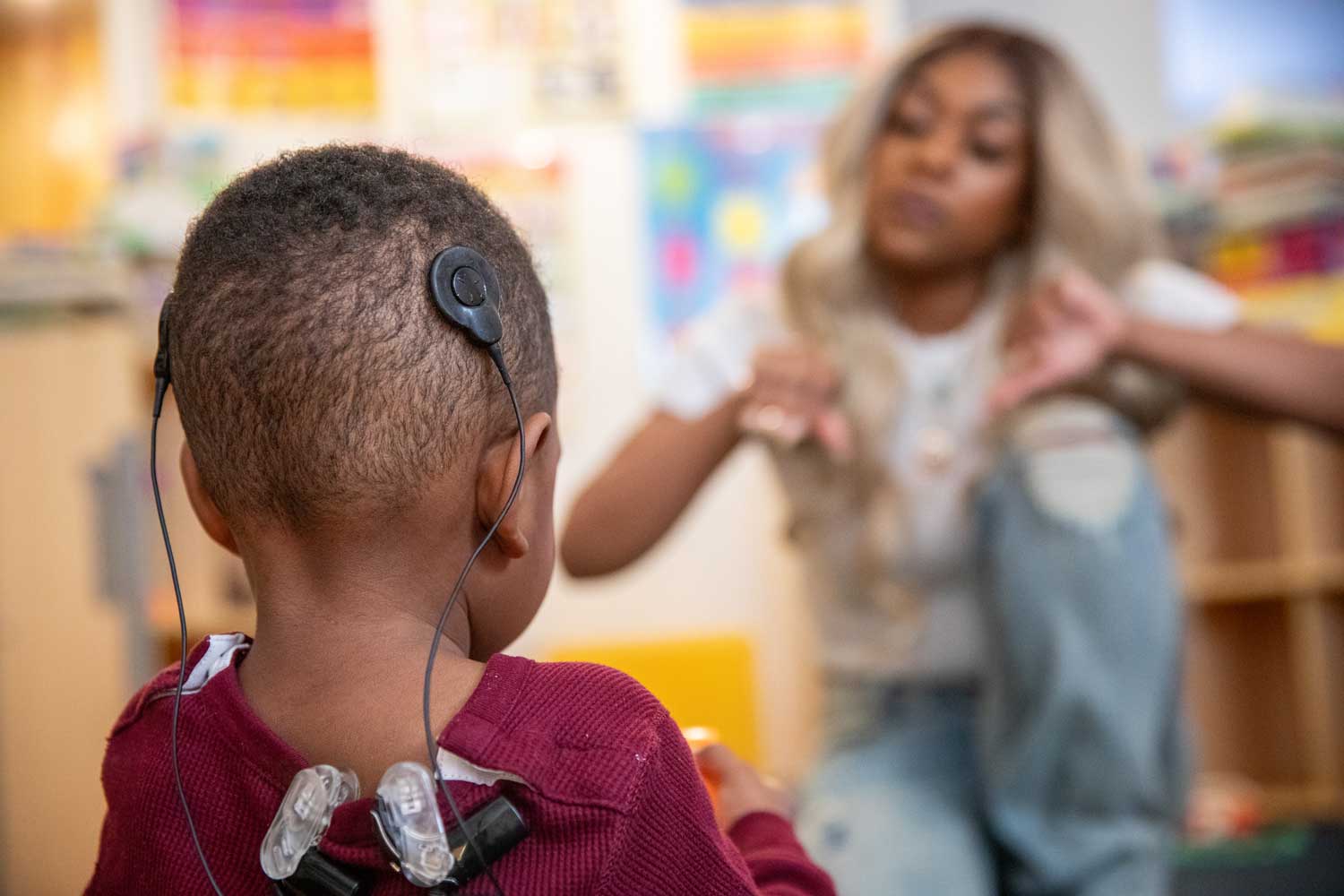 “It’s a parent coaching model because parents and caregivers are the No. 1 language teachers for children,” explains audiology program clinical liaison Joy Kearns, MS, CCC-SLP, LSLS. “We’re not just taking care of the kid, and we’re certainly not just taking care of ears.”