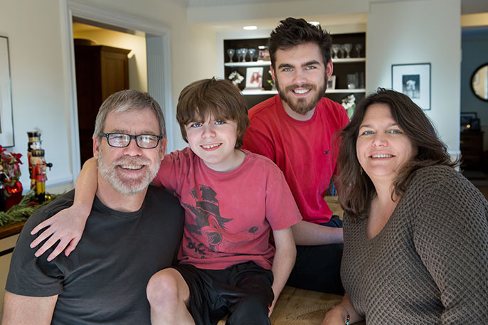 He is standing in front of a big-screen television, game controller in hand. His parents, Dr. Stanley F. Nelson, a UCLA professor of human genetics and a former pediatric oncologist, and M. Carrie Miceli, a UCLA professor of microbiology, immunology and molecular genetics, try to psyche themselves up for a game of “Just Dance.” Dylan and his brother, Calvin, a junior in college, are ready to bust a move.