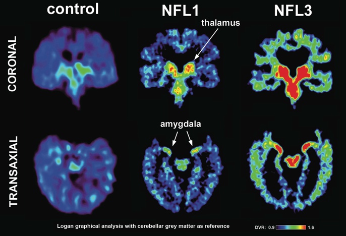Elevated levels of FDDNP have been shown in studies to be associated with cognitive symptoms in normal aging, mild cognitive impairment and dementia, according to Barrio. The FDDNP signals appear to reflect a range of mental symptoms that have been observed in CTE cases, he noted.