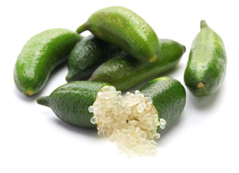 Kahn suggests making an appetizer with Australian finger lime, a citrus relative that tastes like lime but looks like caviar.