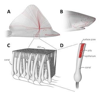 Sharks, skates, and rays can detect very weak electric fields produced by prey and other animals using an array of unusual organs known as the ampullae of Lorenzini. Exactly how these electrosensory organs work has remained a mystery, but a new study has revealed an important clue that may have implications for other fields of research.