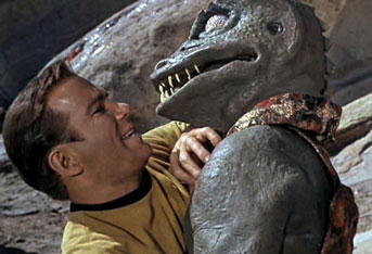The legions of Trekkies who’ve seen every episode multiple times still cringe (or laugh) at the sight of Gorn, the man in the rubber lizard suit in the “Arena” episode. Westmore, however, said it’s not quite fair to compare the original series and the spinoffs. Looking back, he said, “they didn’t have a big budget then, and there was a gentleman who was making them as fast they could do Gorn or any of those things — the salt monster, the pig people — they literally didn’t have time or the budget to go to (makeup pioneer and mentor) John Chambers and have him design an appliance. They’d get the script and they’d be shooting quick.