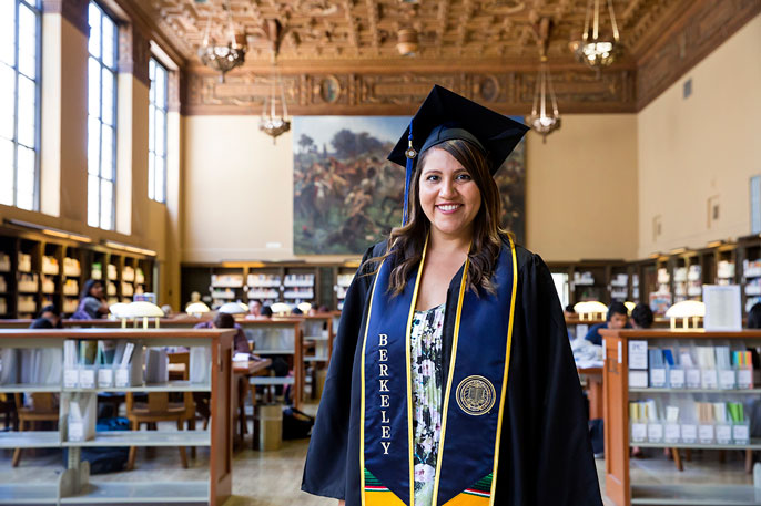 Doe Library’s North Reading Room became Ruiz’s haven. “It was one of the few quiet places where I felt I could focus,” she says. “That season of my life was extremely dark; I didn’t know if I’d make it to graduation, or how I could possibly raise a baby at this time.”