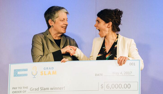 Those skills are particularly needed now, at a time of heightened skepticism about the value of university research and scholarship, said UC President Janet Napolitano, who has emceed Grad Slam since its inception in 2015.