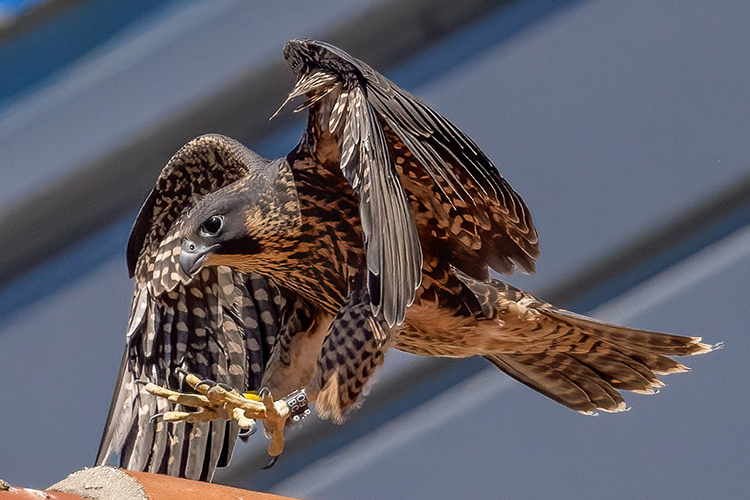 View more photos of the young falcons and their parents in the UC Berkeley story here: Stunning photos show young UC Berkeley falcons learning to fly.