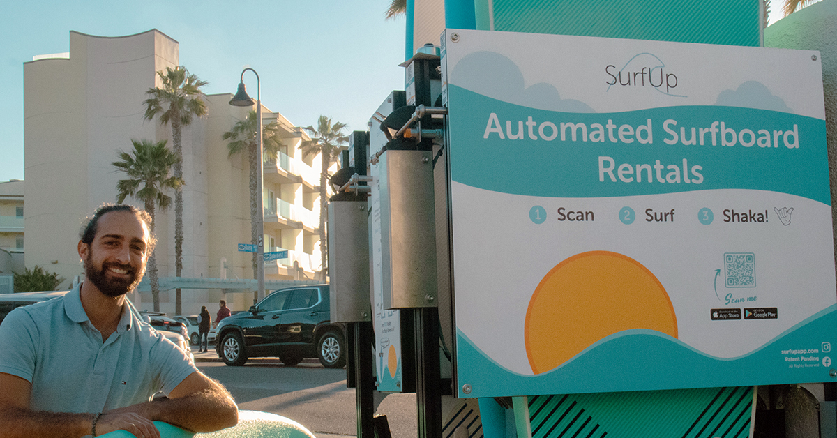 “What we really aim to do with SurfUp is minimize the barriers to entry to make it more accessible and easier for somebody who wants to try out surfing,” said Chris Hissom, SurfUp co-founder and CEO, who earned bachelor’s degrees in physiology and neuroscience from UC San Diego, as well as his MBA from the campus’ Rady School of Management.