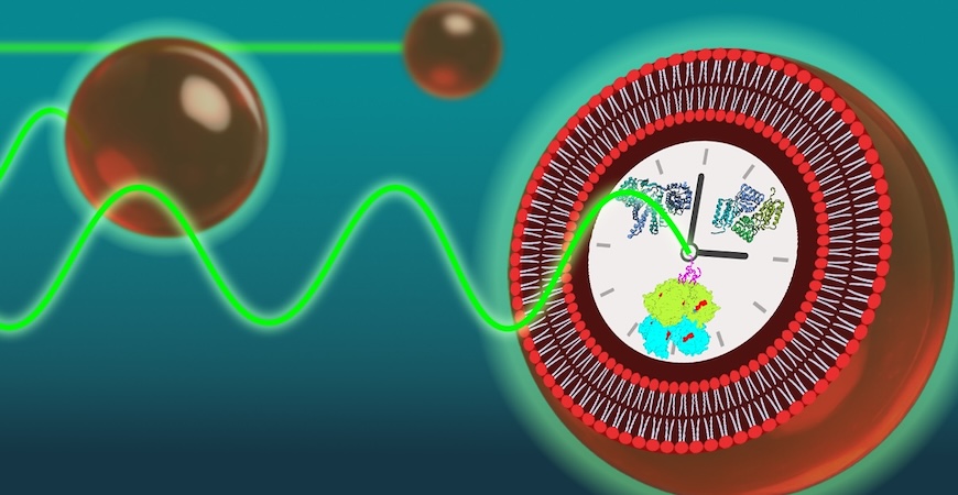 Biological clocks — also known as circadian rhythms — govern 24-hour cycles that regulate sleep, metabolism and other vital processes. To explore the mechanisms behind the circadian rhythms of cyanobacteria, the researchers reconstructed the clockwork in simplified, cell-like structures called vesicles. These vesicles were loaded with core clock proteins, one of which was tagged with a fluorescent marker.