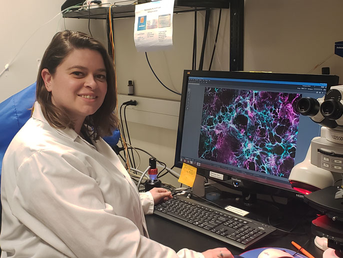 Kauss seeks to literally mend broken hearts, exploring whether a cluster of proteins called the extracellular matrix could hold the clue to helping hearts heal after heart attack and stroke. She is testing these proteins in the lab to see if they can spur damaged heart cells to regenerate.