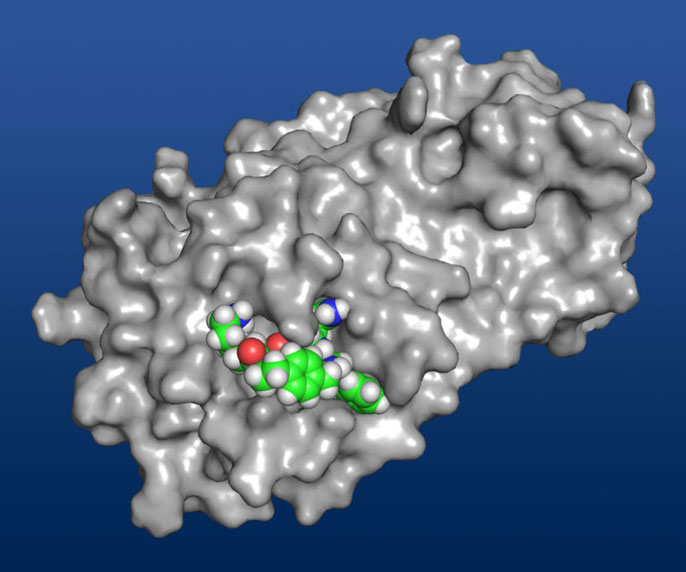 The new macrocycle, Kreutzer said, “sits there in the active site of the enzyme and makes it nonfunctional.”