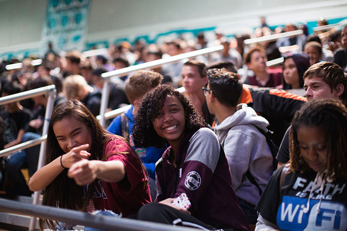 “Each of you represents an opportunity — for yourselves, for your families, for California and for the world,” Napolitano told students of all grade levels who packed the high school gym for the event. “I’m here to tell you if you do the work, you’ll get in, and you’ll get a wonderful education.”