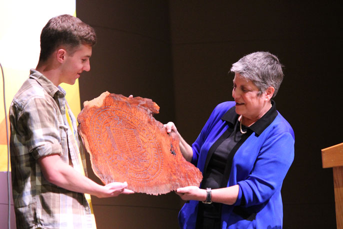 Napolitano’s April 28 visit to Arcata High School was one of a half dozen similar trips this spring in which the president made the case directly to students around California that a UC education is an excellent – and affordable – college option.