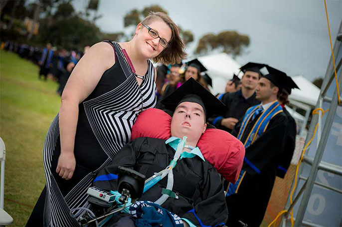 He even took the case to court. After a three-year battle, the state ruled that his needs met the criteria for the acute level of care, which meant he would again be eligible to receive 24-hour care. As such, he enrolled at UC San Diego in fall of 2014.