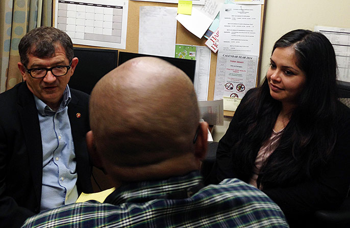 To apply what they’re taught, students counsel veterans one-on-one under the supervision of Melissa Tyner, the instructor in the clinic, or another attorney with the Inner City Law Center, where Tyner works as the directing attorney on the Homeless Veterans Project. During six clinical sessions, students went to homeless shelters and medical clinics for veterans to provide on-site legal services.