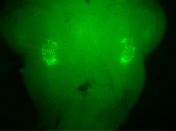 Using a mouse model, Krasnow and his colleagues screened more than 19,000 gene-expression patterns in the animals’ brain cells. They found roughly 200 neurons in the brain stem that manufacture and release one of two neuropeptides, which enable brain cells to talk to each other. Still, the scientists did not know which brain cells these neurons communicated with or why.