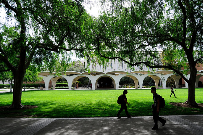 At many campuses throughout the state, most landscape plants are irrigated with non-potable water. In addition, we are working to transition toward drought-resistant ornamental installations.