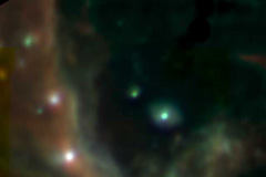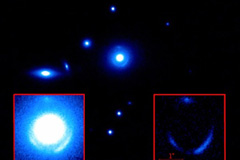 What do you get when you team the world's most powerful telescope with gravitational lensing? A peek at one of the youngest building blocks of the universe. Gravitational lensing, as Einstein theorized, bends lights rays from an object behind a larger object, allowing it to appear much brighter than if it were "alone." A group led by Caltech's Richard Ellis used the technique and the superior light-gathering power of the Keck telescopes to see a system of about a million stars that was forming in the first half-billion years of the universe.