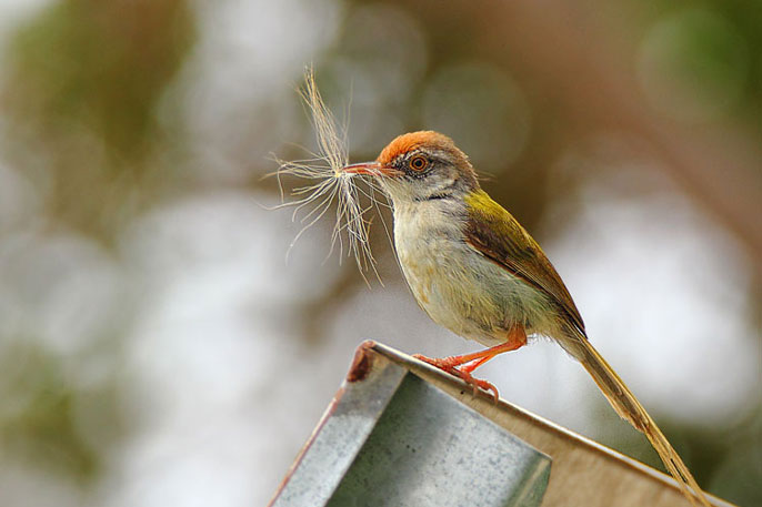 Tailorbirds gather leaf edges, plant fibers and spiderwebs to construct a sturdy nest.