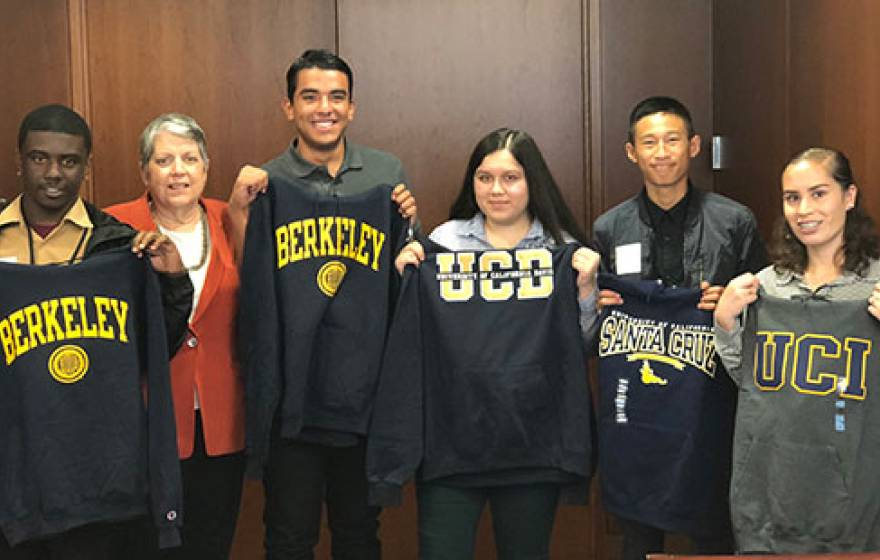 UC President Janet Napolitano has awarded college scholarships to five UC-bound Oakland students.