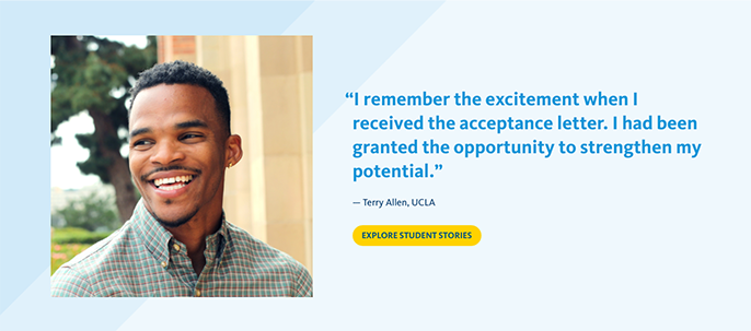- UC academic preparation and outreach programs put first-generation students on an early path to college. UC’s academic preparation and outreach programs — which reached first-generation and low-income students in more than 1,100 K–12 public schools and all 113 California community colleges in 2015–16 — serve as a vital pipeline preparing students from all backgrounds to enroll and succeed in college. Once they’re ready to apply, UC’s comprehensive review admissions policy is designed to ensure that students from all California high schools, including less-resourced schools, have the opportunity to gain admission.